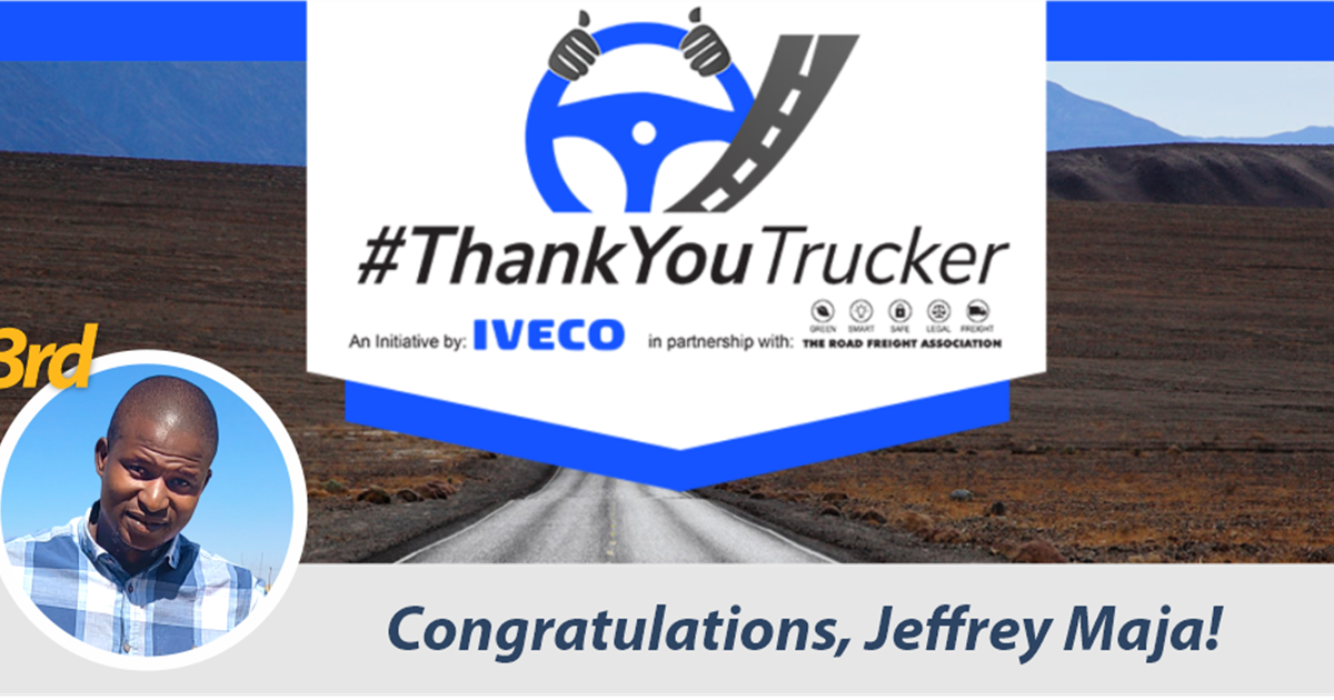 This year, we had the opportunity to nominate one of our drivers, Jeffrey Maja, for the #ThankYouTrucker competition initiated by IVECO in partnership with The Road Freight Association. This competition runs every year, affording Directors and/or managers the opportunity to nominate their drivers. There are three coveted places at the podium, and our driver Jeffrey Maja was able to snag the third-place title.