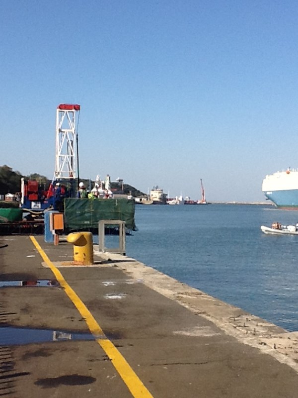 The project required that we drill 6 holes (HQ3 size), with SPT’s, Shelbey’s and Shearvane testing, half a meter out into the sea from the Quay edge.
