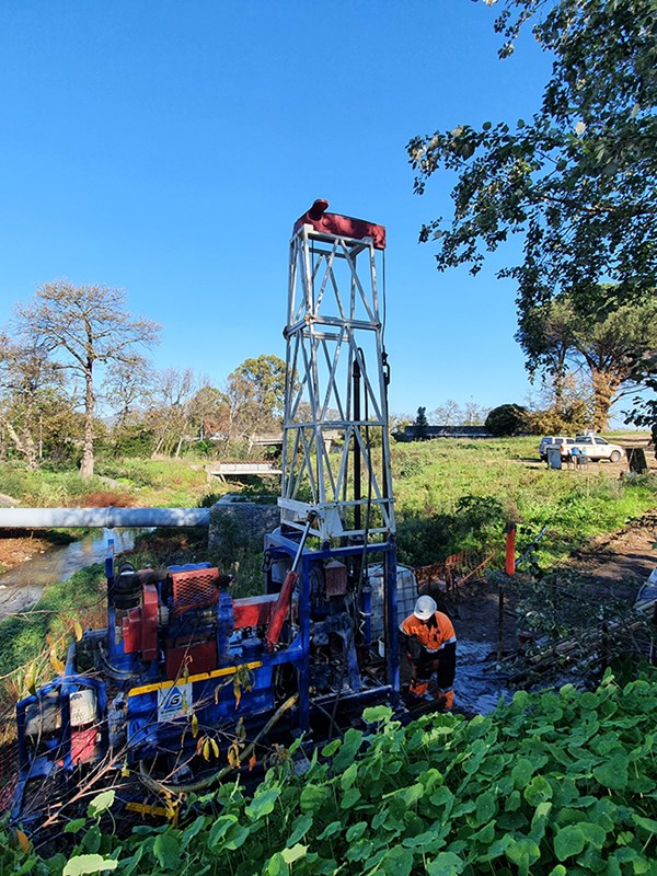 Geomechanics was commissioned to determine the extent of contamination of explosive material in the ground. The Geo-601 Comacchio combination drill rig was converted to drill remotely to reduce the risk of injury to staff from drilling into unexploded ordinance.