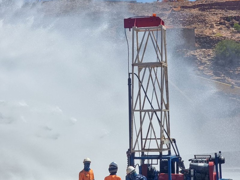 To limit the level of the water and to stop the Apron from flooding, the flow of water through the foot valve had to be reduced during drilling. The flow was increased in the evenings to assist with water supply downstream, which introduced a new challenge of pumping out the excess water that had flooded the drilling area overnight.