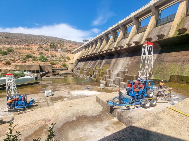 The aim of the drilling project was to determine the concrete thickness between the Apron and the contact point with the natural ground that the Apron has been founded on. As challenging as the drilling is in this area given the extreme hardness of her rock, the supply of water, and having to use surface recirculation sumps, access was going to be the major obstacle.