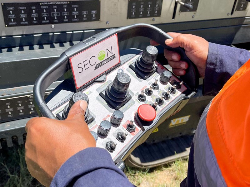 The Secon is fitted with a wireless remote control system connected to two remotes which the operators can use to drill and mobilise the rig remotely.