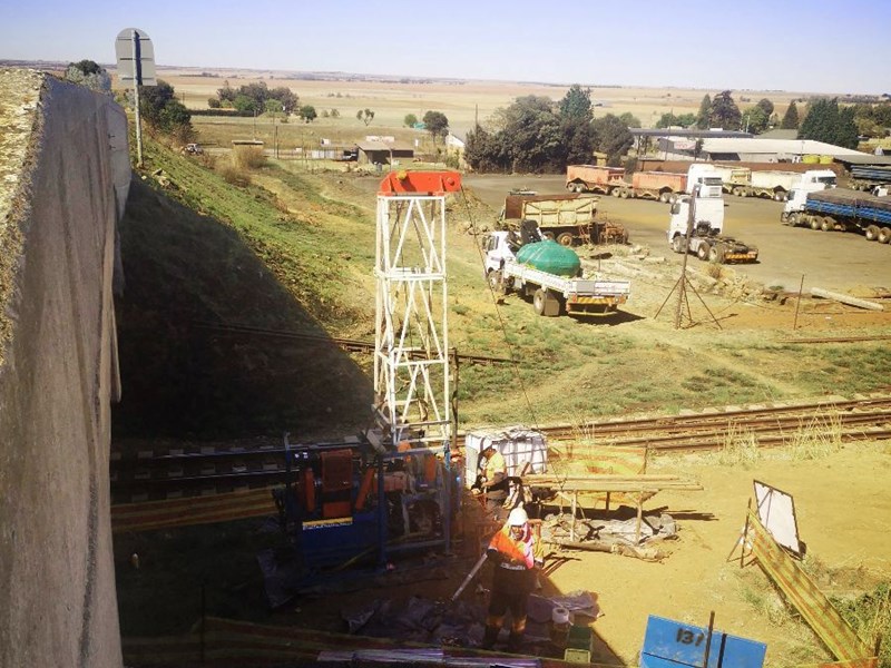 The team used YWE D90 drill rigs designed and built by Geomechanics. These rigs are well-suited for drilling in a variety of conditions, including the hard rock and boulders found in the North West Province.