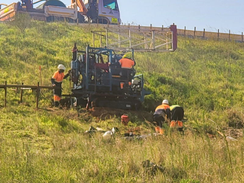 The boreholes were drilled to allow for the installation of 90mm slotted PVC casings to prevent collapse and ensure proper placement of the Vibrating Wire Piezometers.